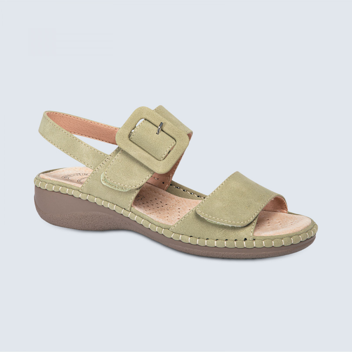Confort absolu avec ses sandales chaussures ouvertes SANDRA femme senior pratiques et élégantes. Réglables par velcro sur le dessus et boucle, elles ont une semelle intérieur cuir très confortable.
