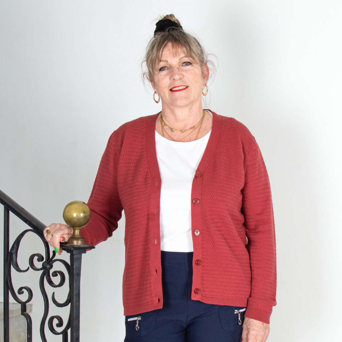 Un gilet 100% coton, maille fantaisie, manches longues, boutonné, idéal pour les premières fraîcheurs pour toute femme senior coquette