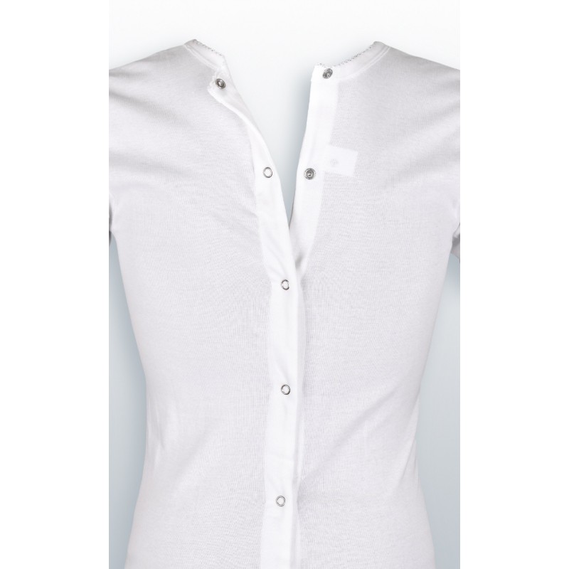 L'ouverture dans le dos permet aux soignants d'habiller facilement les personnes agées en difficultés. Tricot femme senior sans manche, blanc avec dos à pressions (Médicalisé) de forme tubulaire sans couture et vendu à l'unité. Maillot de corps ou tricot de peau selon votre appellation.