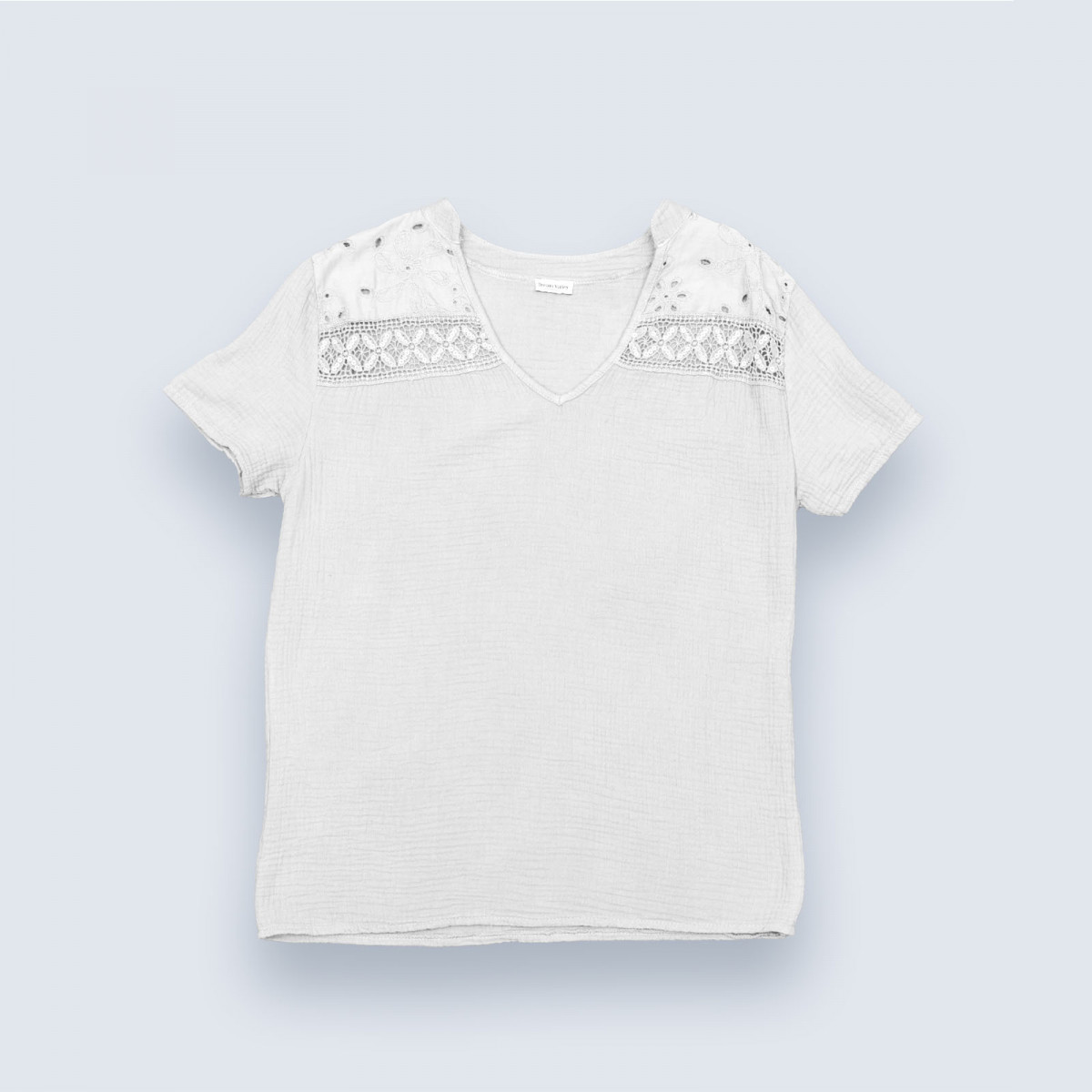 Le charme de la dentelle et le confort du coton pour ce T shirt uni balnc