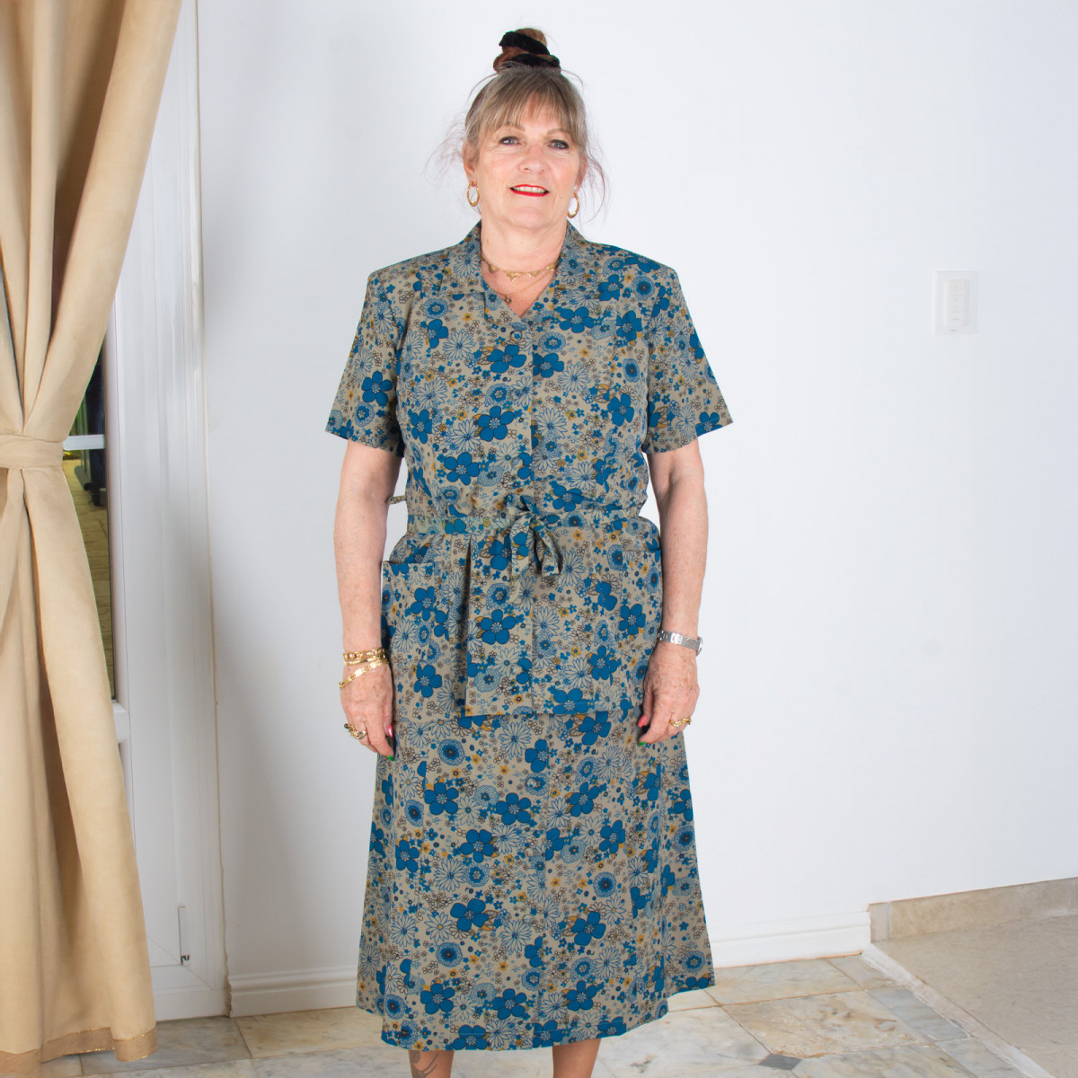 Jupe taille élastique, boutonnée devant, 100% polyester pour femme senior coquette qui recherche un vêtement pas cher en soldes. A assortir à son chemisier assorti pour créer un tailleur
