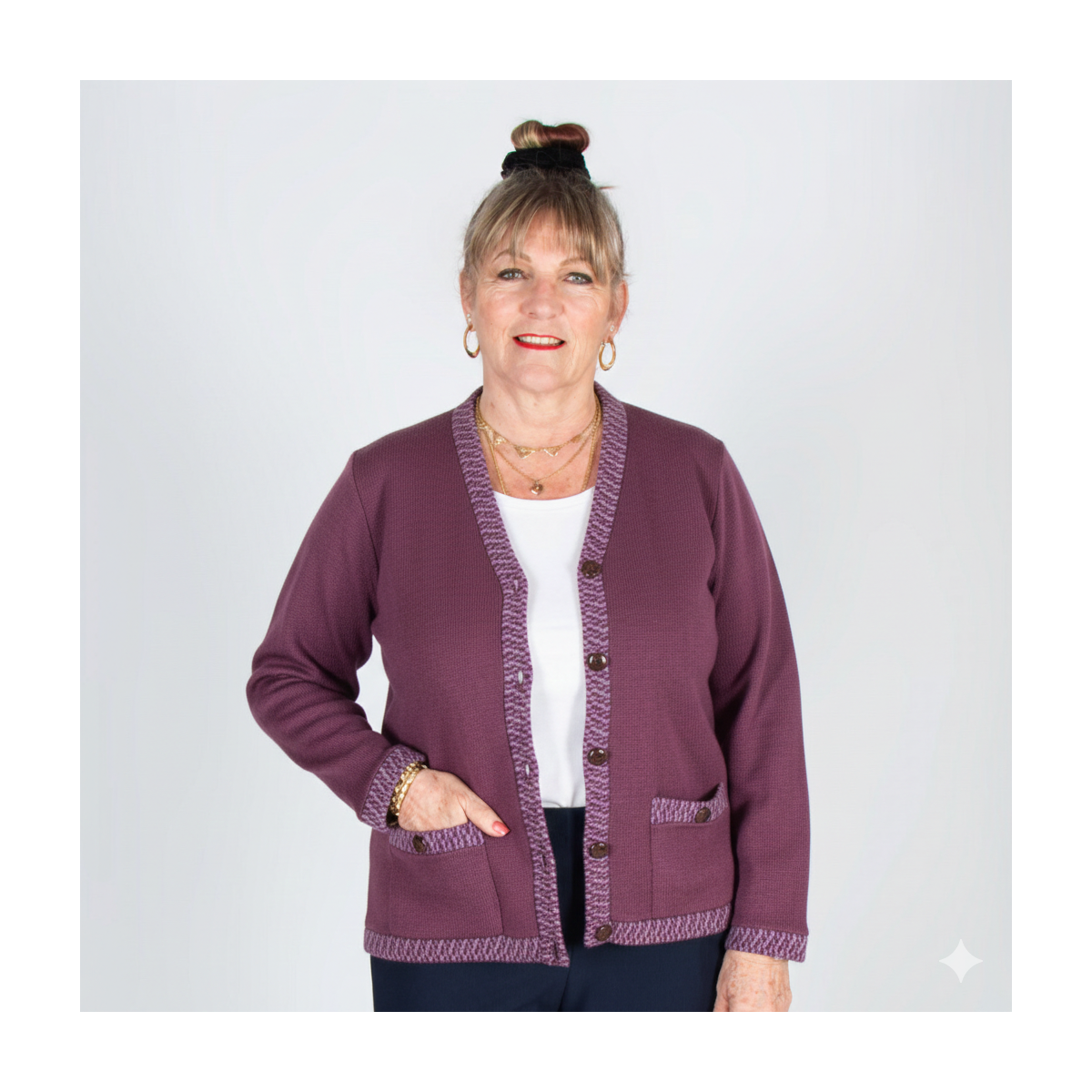 Ce gilet femme senior GALENE est très élégant avec son imprimé sur les bords. Facile d'entretien, en 100% acrylique
