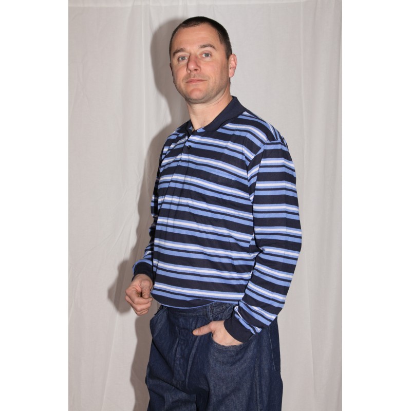 Le complément idéal de tout pantalon ou bermuda uni, le polo homme senior manches longues rayé en 3 coloris est en 100% coton et à petit prix en fin de série.